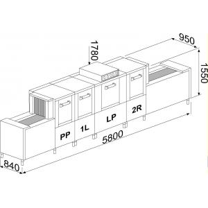 EN 5000Tunel de cinta continua.Con Prelavado+Lavado+2º Lavado+Doble aclarado.Producción min.3500,max.5000 platos/hora